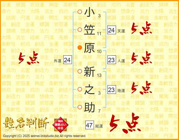 小笠原新之助さんの総運は47画の5点!