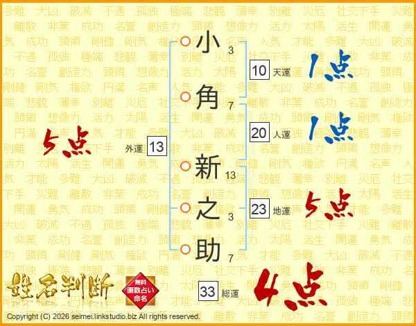 小(3画)角(7画) 新(13画)之(3画)助(7画)