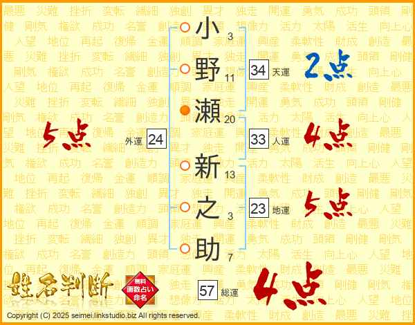 小野瀬新之助さんの総運は57画の4点!