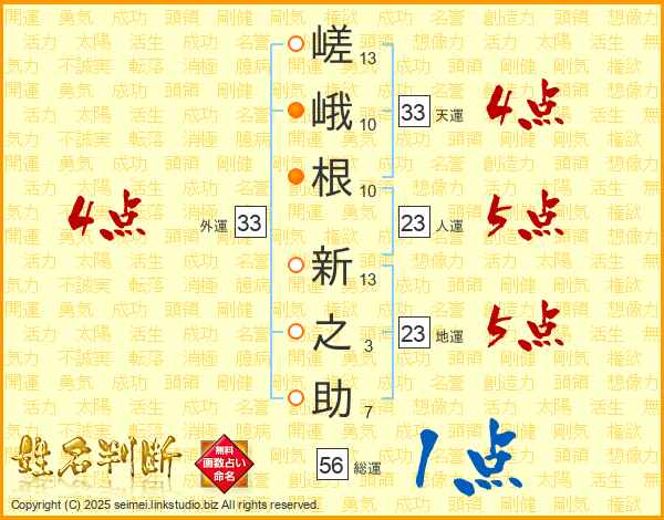 嵯峨根新之助さんの天運は33画の4点!