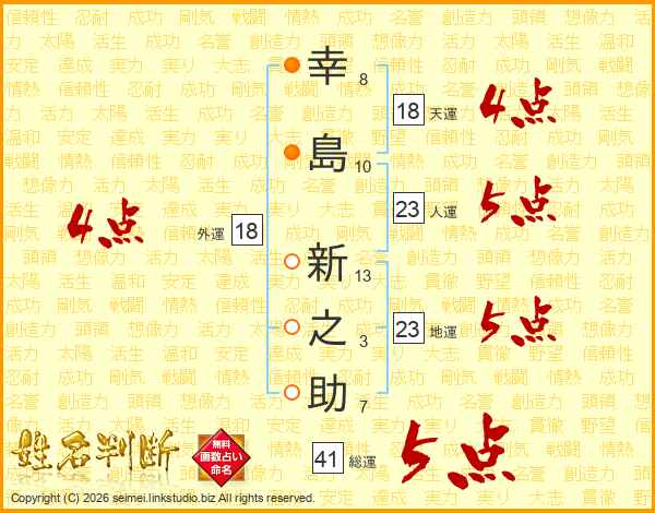 幸(8画)島(10画) 新(13画)之(3画)助(7画)