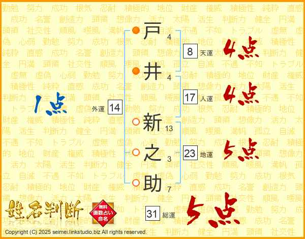 戸(4画)井(4画) 新(13画)之(3画)助(7画)