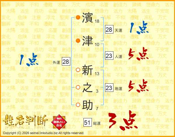 濱津新之助さんの人運は23画の5点!
