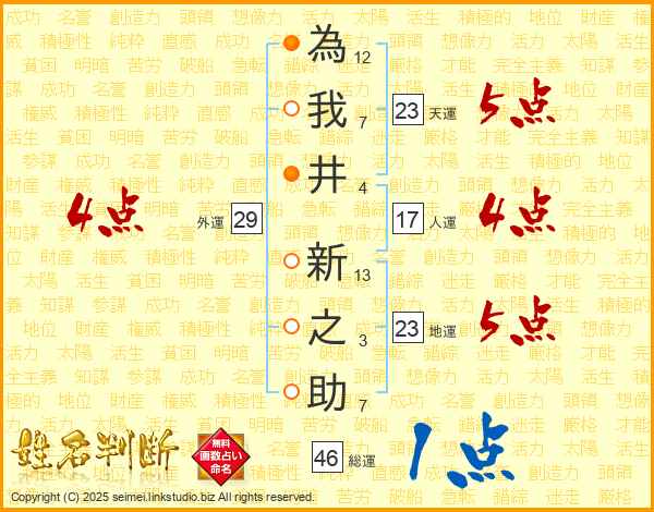 為(12画)我(7画)井(4画) 新(13画)之(3画)助(7画)