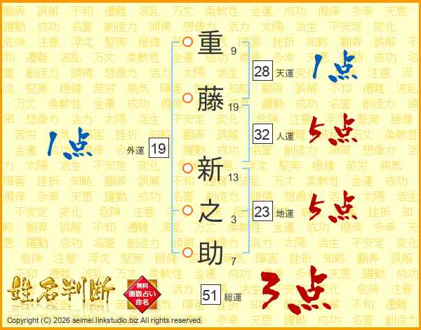 重藤新之助さんの総運は51画の3点!