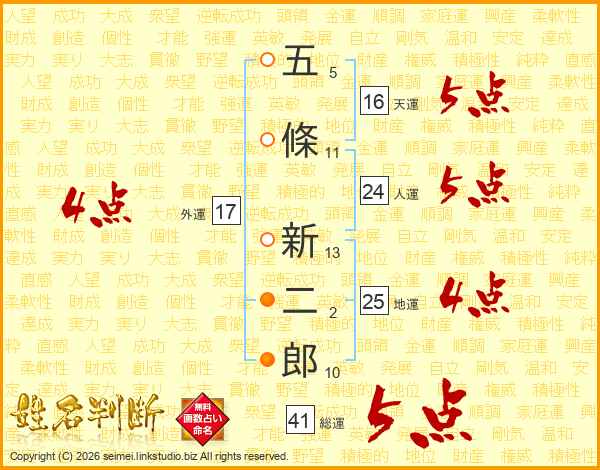 五條新二郎さんの総運は41画の5点!
