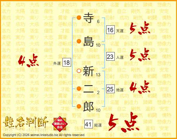寺島新二郎さんの総運は41画の5点!