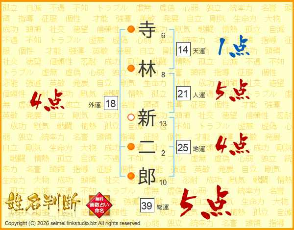 寺林新二郎さんの総運は39画の5点!