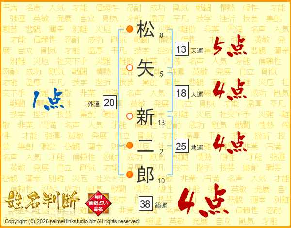 松矢新二郎さんの総運は38画の4点!