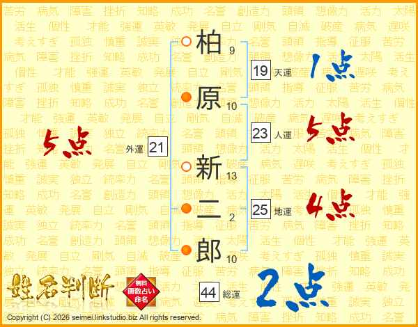 柏(9画)原(10画) 新(13画)二(2画)郎(10画)