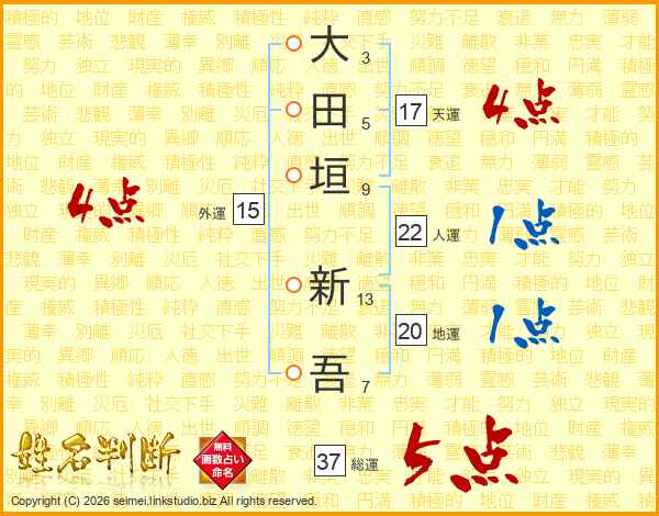 大田垣新吾さんの総運は37画の5点!
