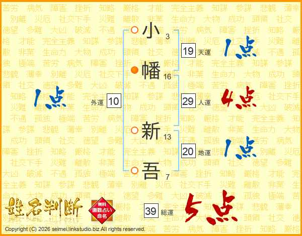 小幡新吾さんの総運は39画の5点!