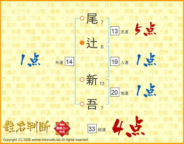 尾辻新吾さんの総運は33画の4点!