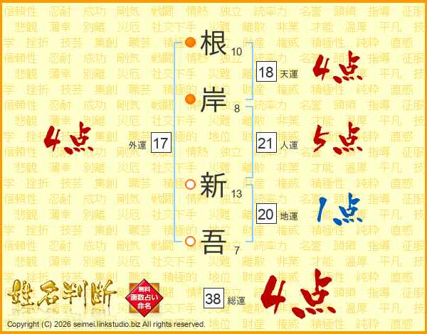 根岸新吾さんの総運は38画の4点!