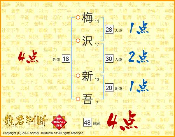 梅沢新吾さんの総運は48画の4点!