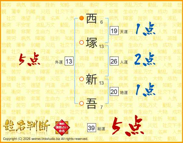 西塚新吾さんの総運は39画の5点!