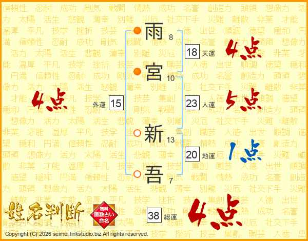 雨宮新吾さんの総運は38画の4点!
