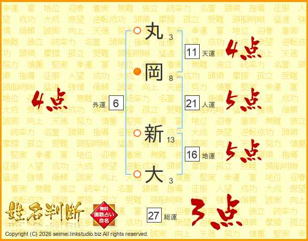 丸岡新大さんの天運は11画の4点!