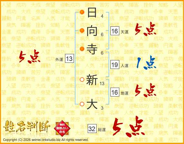 日向寺新大さんの総運は32画の5点!