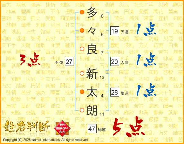 多々良新太朗さんの総運は47画の5点!