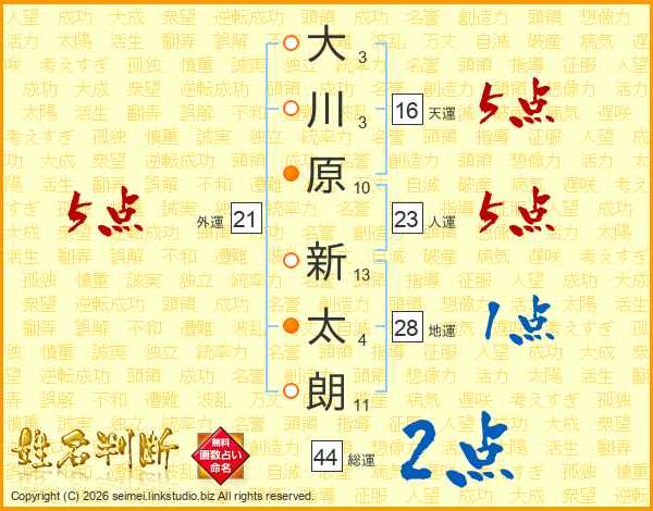 大川原新太朗さんの総運は44画の2点!