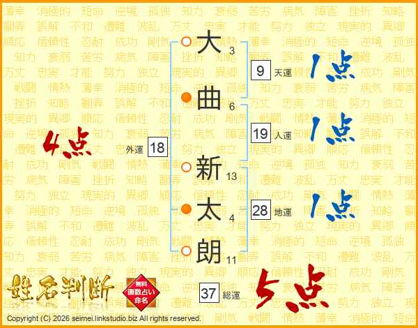 大曲新太朗さんの総運は37画の5点!