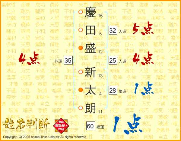 慶田盛新太朗さんの天運は32画の5点!