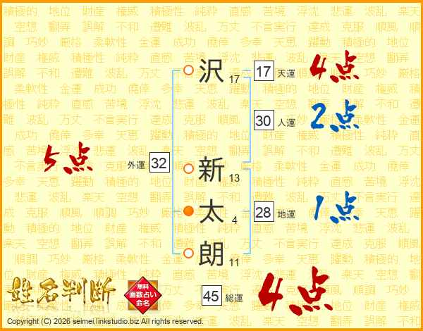 沢新太朗さんの総運は45画の4点!