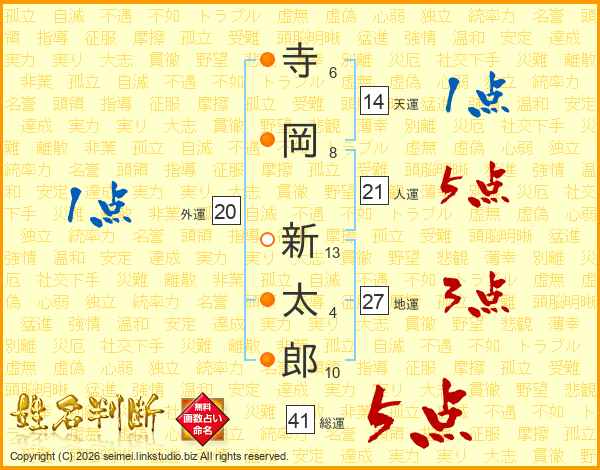 寺岡新太郎さんの人運は21画の5点!