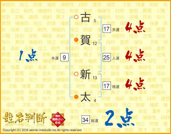 古賀新太さんの人運は25画の4点!
