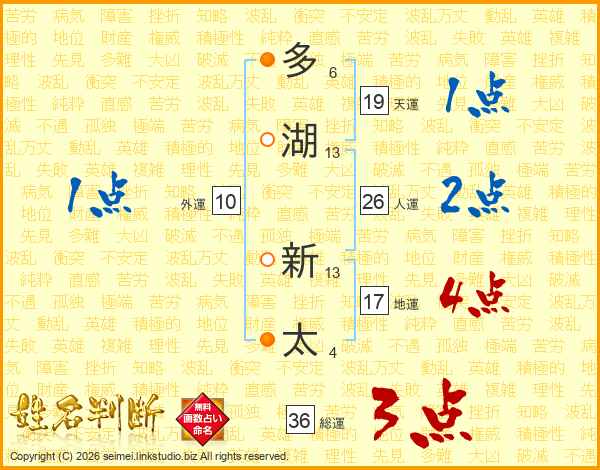多湖新太さんの人運は26画の2点!