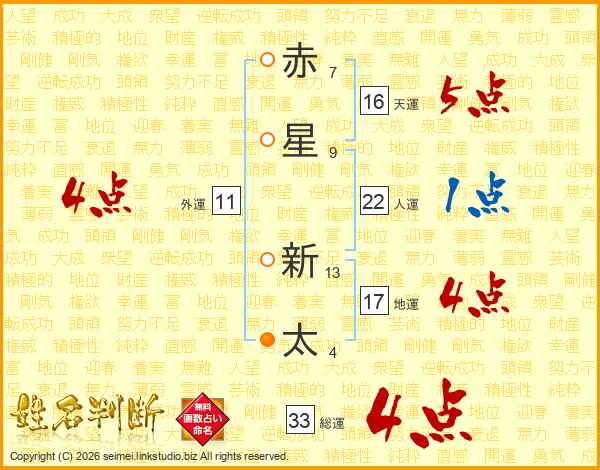 赤星新太さんの総運は33画の4点!