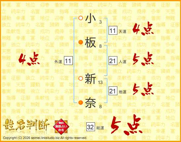 小板新奈さんの総運は32画の5点!