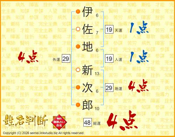 伊佐地新次郎さんの総運は48画の4点!