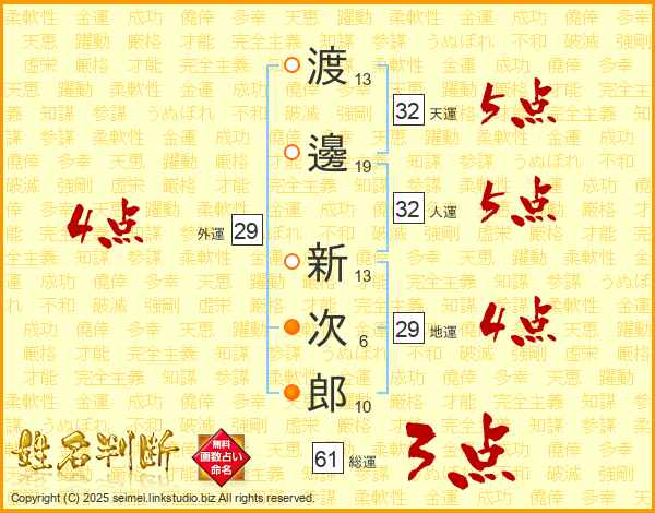 渡邊新次郎さんの天運は32画の5点!