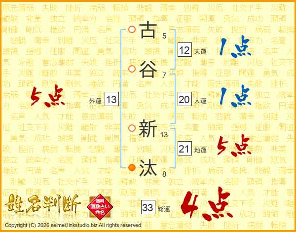 古谷新汰さんの総運は33画の4点!