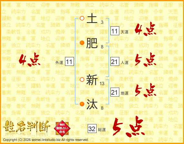 土肥新汰さんの総運は32画の5点!