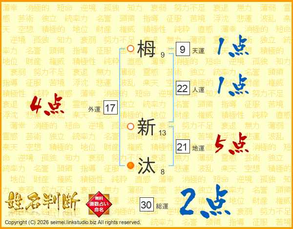 栂新汰さんの総運は30画の2点!