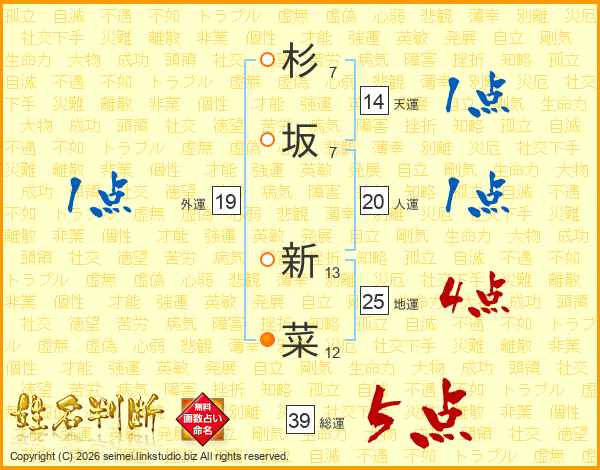 杉坂新菜さんの総運は39画の5点!