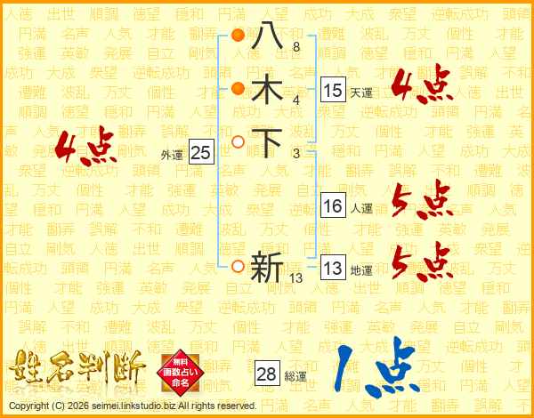 八木下新さんの総運は28画の1点!