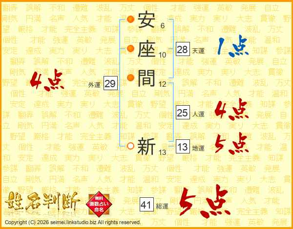 安座間新さんの総運は41画の5点!