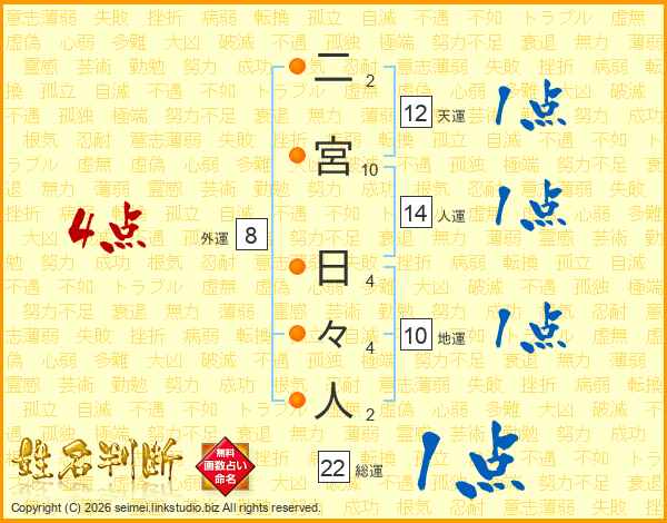 二宮日々人さんの総運は22画の1点!