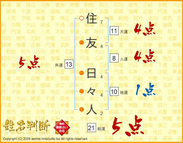 住(7画)友(4画) 日(4画)々(4画)人(2画)