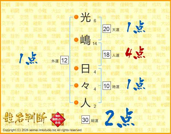 光嶋日々人さんの総運は30画の2点!