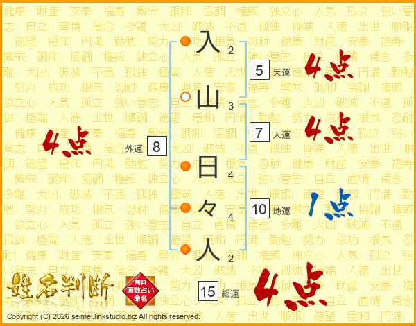 入山日々人さんの総運は15画の4点!
