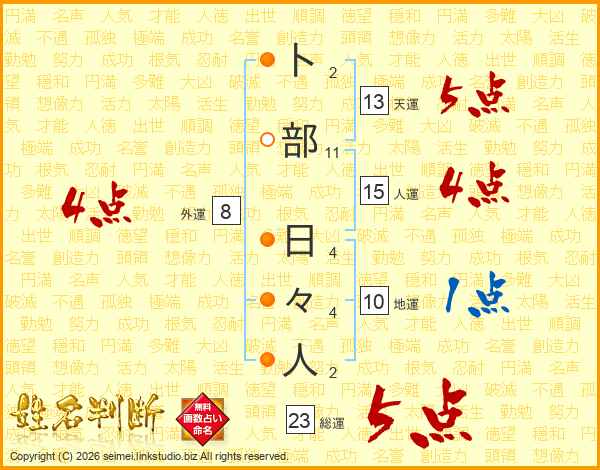 卜部日々人さんの総運は23画の5点!