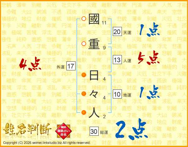 國重日々人さんの総運は30画の2点!