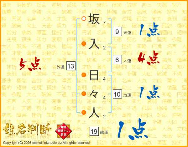 坂入日々人さんの総運は19画の1点!