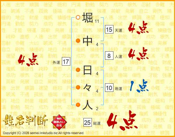 堀中日々人さんの総運は25画の4点!