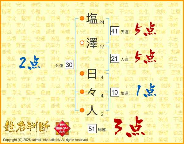 塩(24画)澤(17画) 日(4画)々(4画)人(2画)